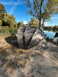 Tenda carpfiahing usata che presenta qualche segno dovuto all’utilizzo