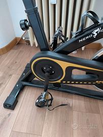Nero Sports Cyclette Aerobica da Spinning Allenamento Indoor Fitness Cardio Spin Bike. Poco utilizzata. Marchio: Nero sports, Peso: 12kg, altezza articolo: 112cm, materiale: lega di acciaio, meccanismo della resistenza: fluido, peso massimo raccomandato: 120kg.