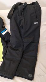Questo completo da sci maschile, Taglia M, composto da giacca e pantalone con bretelle, è realizzato in tessuto con membrana Dryboost PRO WR/WVP 5000/5000. La resistenza all'acqua è superiore a 5000 mm e la traspirabilità al vapore acqueo è superiore a 5000 g/m2/24h. Presenta una vita elasticizzata nella parte centrale posteriore regolabile con velcro, la chiusura è con doppio bottone a pressione, con bretelle regolabili e amovibili. L'imbottitura è in ovatta di poliestere con differente densità di peso. La regolazione sul fondo giacca è con coulisse, il cappuccio è amovibile e regolabile sul davanti e nella parte posteriore, mentre i polsini sono regolabili con velcro. Il fondo manica con ghetta interna è in tessuto impermeabile e i polsini elasticizzati con foro per pollice fungono da mezzo guanto.