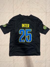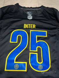 Vendo Inter Black NFL Jersey Nike, maglia speciale della collezione Soccer x NFL. Un modello particolare che unisce football americano e calcio, con grafiche ufficiali Inter e numero 25 fronte/retro. Lo store ufficiale Inter la presenta proprio come jersey in stile gridiron/NFL della collezione 2025. Taglia M molto oversize! Sono alto 170 CM