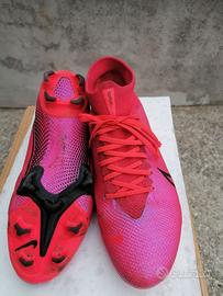 Scarpe da calcio tacchetti in plastica misura 40.5 con calzino di colore fucsia, adatte a terreno sintetico e in erba.
