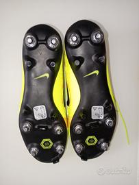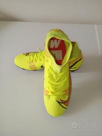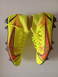 Vendo scarpe da calcio Nike Mercurial Superfly colore giallo fluo, numero 40. Non sono mai state usate, con tacchetti ancora nuovi (come visibile nelle foto). Si tratta di un modello FG/SG, quindi adatto a campi in erba naturale. La calzata è aderente grazie alla calza alta, risultano comode e leggere durante il gioco. Le scarpe sono originali e non presentano difetti strutturali. Prezzo trattabile