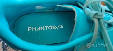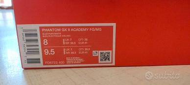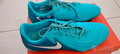 Scarpe da calcio usate pochi mesi da un bambino di 12 anni. In discrete condizioni: il bordo anteriore della scarpa sinistra è leggermente sollevato ma non scollato, come si vede dalla foto n.2. A tre estremità dei lacci si è tolto l'aghetto in plastica che aiuta l'introduzione negli occhielli della scarpa. Con scatola originale.