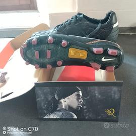 Vendo un paio di scarpe da calcio Nike edizione Ronaldinho dois nere. Purtroppo non mi stanno. Mai indossate. Spedisco con scatola Nike arancione, fascicolo originale e 4 cartoncini che ho trovato all'interno. Inoltre regalo due parastinchi kipsta e lacci di ricambio.