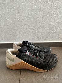 Nike Metcon 5 da donna, modello specifico per l’allenamento funzionale, perfette per CrossFit, sollevamento pesi e allenamenti ad alta intensità. Pensate per offrire massima stabilità, aderenza e durata, sono una delle scelte preferite da atlete e appassionate di fitness.