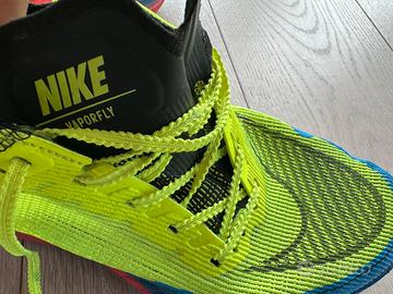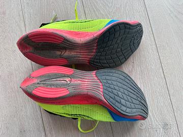 Vendo Nike ZoomX Vaporfly Next %2 usata. Utilizzate solo in maratona. Chilometraggio totale: 200/230 km. Taglia stimata EU 40 (lunghezza interna circa 25 cm misurata manualmente, etichetta non presente). Indossate da chi calza normalmente un 41.