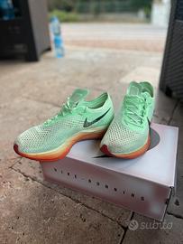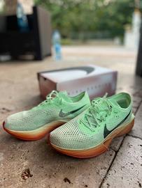 Vola oltre i tuoi limiti con le Nike Vaporfly 3, modello Eliud Kipchoge. È la scarpa da corsa ideale per qualsiasi distanza e qualsiasi sfida. Reattive a più non posso per via della piastra in carbonio, sono scarpe velocissime. Hanno percorso circa 50 km, cioè 4 gare da 10 km.