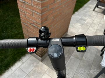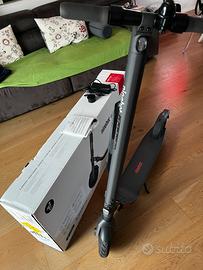 Preso qualche anno fa ma usato pochissimo All epoca il suo valore era di 730 euro, per doppia batteria. Solo consegna a mano zona Venezia e lungo direttrice A27 fino a Belluno. Completo di scatola manuali e caricabatteria. Sembra nuovo. Il Ninebot E45E di Segway è un eScooter di alta qualità che raggiunge un raggio d'azione fino a 45 km. Con una velocità fino a 25 km/h è il compagno ideale per le brevi distanze tipiche della città. 9'''- giranti a doppia densità fino a 25 km/h di velocità e fino a 45 km di distanza tre freni indipendenti, freno anteriore elettronico e rigenerativo, freno posteriore magnetico e freno a pedale per una maggiore sicurezza fari anteriori, posteriori e luci di stop integrati E-MARK LED, 3 modalità di guida con campanello