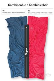 Brand Name NORDKAMM Colour Blue - Cotton Occupancy 1 Person Item Shape Mummy Seasons Summer Temperature Rating 16 to 30 °C 100% PURE COTTON: perfect for travel as a travel sleeping bag, hygienic protection, inner sleeping bag. Lightweight slim small pack - 375g - petrol blue and red VERSATILE: Travel, outdoor, hiking, camping, tent, blanket, summer sleeping bag, travel towel, tropical zone, festival, backpacking, hiking, travel, adult inlet, men, women FOR TWO PEOPLE: for couples, can be used as a double sleeping bag for 2 people (blue = left zip, red = right zip, length 70 cm), size 220 x 80/65 cm, height up to 200 cm BREATHABLE BAG: Elastic and breathable bag for easy use and space-saving. Small pack, 9 x 20 cm tablet. Lightweight, compact and breathable. PRACTICAL CUSHION INSERT: On the top of the head there is a pillow pocket for or clothes that you can use as a pillow