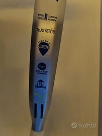 - Descrizione: Racchetta con forma a goccia pensata per bilanciare potenza e controllo. Telaio e superficie in fibra di carbonio (superficie 12K), nucleo in schiuma EVA di durezza media, profilo 38 mm e peso indicativo intorno a 360–375 g. Finitura ruvida per migliorare l’effetto sulla palla.