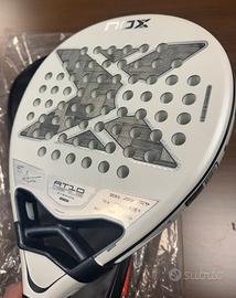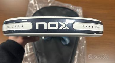 Vendo racchetta padel Nox AT10 12K Alum Xtrem Lite 2026, aqcuistata il 18/02/2026. Peso 360 grammi. Come da foto, presenza “strusciate” da normale utilizzo, nessuna crepa.