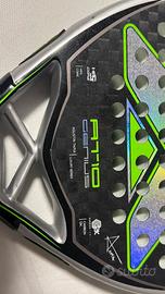 Pala in ottime condizioni adatta a intermedi esperti (normali segni di utlizzo ma nessun danno strutturale) Design a goccia con bilanciamento intermedio per versatilità nel controllo e nella potenza. Costruzione in carbonio al 100% con tecnologia Dynamic Composite Structure per una maggiore resistenza. Superficie testurizzata testurizzata per ottimizzare l'effetto e la presa della palla. Nucleo HR3 e nucleo in fibra di carbonio 12K per una risposta rapida e una sensazione di fermettezza.