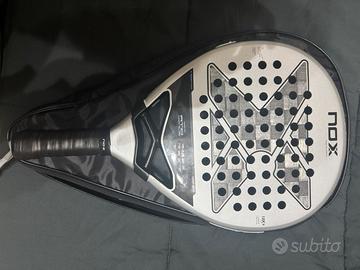 Vendo pala da padel nuova con custodia originale, la racchetta é stata utilizzata solamente per 6 partite non mostra alcun segno di usura e nessun graffio, racchetta molto equilibrata e con una buona risposta piatto carbonio 18k, vendo per passaggio a pala differente