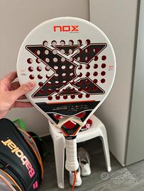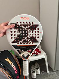 Vendo nuova con al massimo 10 partite NOX ML10 Quantum 3K 2025 Miguel Lamperti, con para colpi gia inserito , ce qualche graffio laterale ma niente di che .