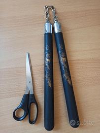 Vendo Nunchaku (impugnatura in gomma) utilizzati poche volte. Stampa dragone leggermente rovinato come in foto.