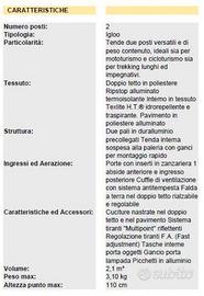 Materiali: Doppio tetto in Polyester alluminato e cuciture nastrate - impermeabile garantito per una colonna d'acqua fino a 2000mm