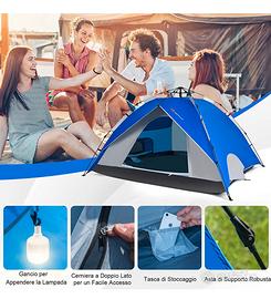 NUOVA Tenda Pop up Portatile da Campeggio per 4 Persone, Tenda 2 in 1 a Doppio Strato con Parte Esterna Smontabile, Borsa di Trasporto, 2 Finestre a Rete, 2 Porte con Chiusura Lampo