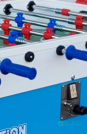 Calcio balilla marca Roberto Sport, linea Revolution, modello Professional, (Professional Revolution Roberto Sport) nuovo, in scatola originale, mai montato (foto esplicativa del modello), imballato, fornito con 10 palline nuove ed 1 bomboletta spray lubrificante Roberto Sport.