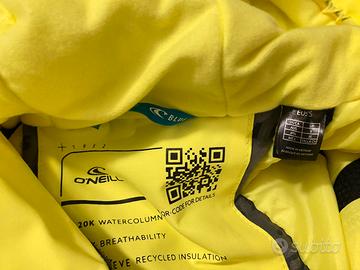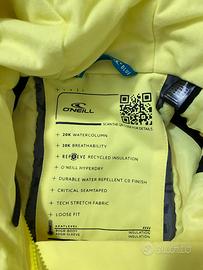Taglia S (donna). Sulla giacca, sotto la manica, c’è una macchia di sporco dovuta allo snowboard, ma si può portare in lavanderia e tornerà come nuovo.