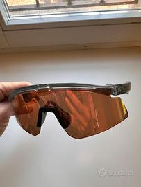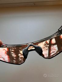 Oakley Hydra montatura Crystal Black, lenti Prizm (bronzo/rame) Vendo occhiali da sole Oakley Hydra (modello OO9229), shield semi-rimless ispirato ai leggendari Razor Blades anni ‘80, rieditato da Oakley nella linea Heritage. Montatura in BiO-Matter® trasparente nera (Crystal Black) con logo OAKLEY giallo sull’asta — un omaggio diretto all’estetica originaria del marchio californiano. Lenti shield in tonalità bronzo/rame con riflessi dorati. Condizioni: nuovi. Nessun graffio visibile sulle lenti, montatura integra. Include: •Custodia rigida originale Oakley con zip •Sacchetto in microfibra Oakley (funge anche da panno per pulizia) Caratteristiche tecniche: •Design semi-rimless a scudo cilindrico •Montatura BiO-Matter® (bio-plastica con almeno 56% di carbonio di origine vegetale da olio di ricino) •Tecnologia Prizm™ per ottimizzazione di colore e contrasto •Protezione UV 100% fino a 400nm •Three-point fit (calzata su tre punti di appoggio) per comfort prolungato •Prodotti da Luxottica Group Prezzo di listino nuovo: circa 180–210 EUR a seconda della variante lente.