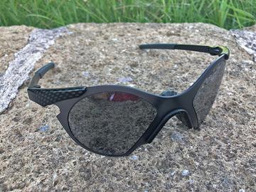 Oakley Sub Zero Carbon Fiber Black Iridium, originali anno 1996, buono stato di conservazione, qualche segno sulle lenti, gommini sulle aste leggermente rovinati alle estremità posteriori. È compresa la scatola, manca invece la sacchetta morbida. Sono leggerissimi, pesano solo 19 grammi. Prezzo trattabile