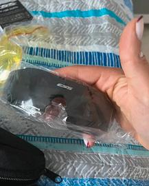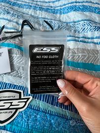 Accessori: Panno anti-appannamento (No-Fog Cloth), fascia elastica di ritenzione, adesivo ESS e manuali d'istruzioni.