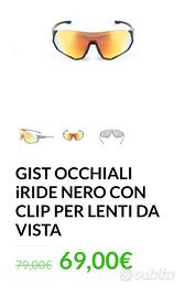 Occhiali da ciclismo Gist, vendo per errato regalo utilizzati pochissime volte, completi di scatola originale e clip ottica (graduabile) per chi indossa occhiali da vista.