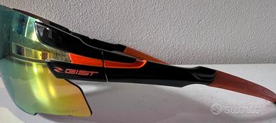 Vendo occhiali da ciclismo marca GIST colore astine arancio/ nero con tripla lente( arancio specchiata/ arancio trasparente & trasparente)