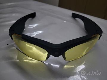 Occhiali running MyMa con camera per registrare le tue corse, presente anche Bluetooth per collegare al telefono ,con porta USB e scheda di memoria .presente anche due vetri nuovi ci colore bianco e nero che si possono sostituire