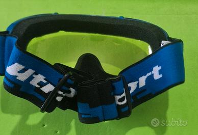 Occhiali da sci e sport vari con montatura blu e lenti trasparenti, di marca Ultrasport.