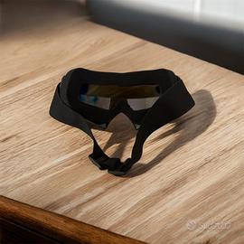 Occhiali da sci con montatura nera e lenti a specchio colorate.