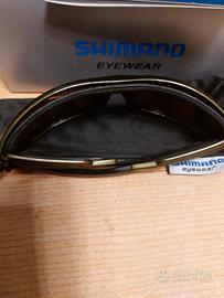 Occhiali da sole polarizzati Shimano Purist, colore telaio verde e lenti marrone-arancione.
