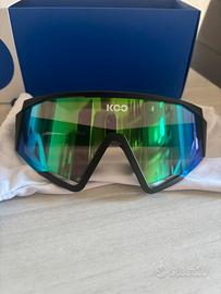 Occhiali da sole KOO modello Spectro, colore nero opaco con lenti a specchio verdi. Sono nuovi e in perfette condizioni.