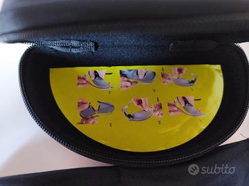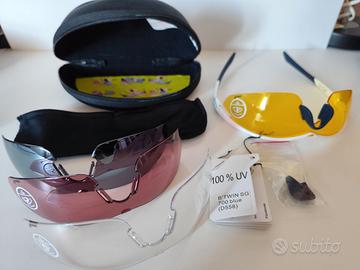 Occhialo per ciclismo, protezione 100%UV, antiscivolo, tre lenti di ricambio di differenti colori, più custodia rigida