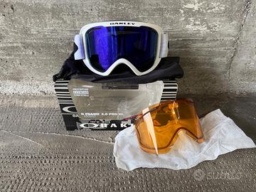 Vendo causa inutilizzo occhiali da sci della Oakley. Come da foto sono nuovi e tenuti bene, usati massimo 3 volte. Insieme alla lente blu/viola c'è anche quella di riserva arancione. Elastico bianco e consegno anche la confezione originale.