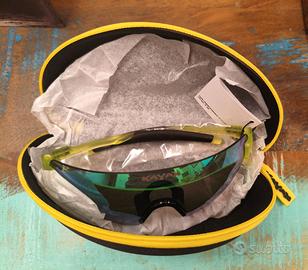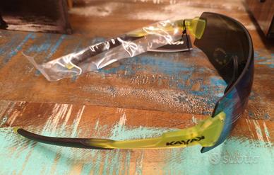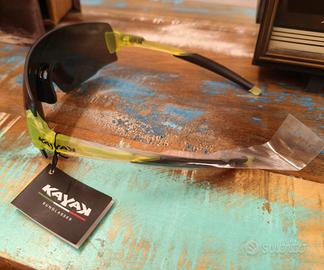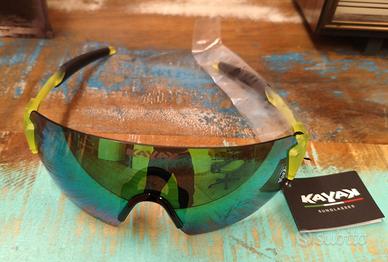 occhiali da sole sportivi Kayak nuovi con cartellino ancora attaccato e carta velina di protezione visibili a Bologna Kayak 2985 Occhiali sportivi dallo stile moderno e leggero, perfetti per ciclismo, running e sport outdoor. Montatura nera lucida con linee aerodinamiche per una vestibilità stabile e confortevole. Lente specchiata con ampia copertura, protezione UV400 e visione nitida. Presenta un nasello regolabile e terminali antiscivolo per massimo grip anche in movimento. In dotazione custodia rigida.