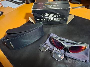 occhiali sportivi con aggiunta di lenti graduate. piccolo difetto nella lente dx come da foto ma non influisce nella visione.