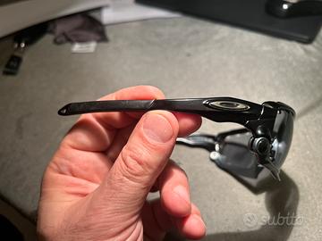 Bellissimi occhiali sportivi originali Oakley modello Racing Jacket (successivamente denominati Jawbone) usati solo due volte, come nuovi, montatura nera e grigio metallizzato, lenti grigie in policarbonato perfette senza un segno. Le lenti hanno lateralmente delle sagomature per la ventilazione, adatte per gli sport tipo bike. Custodia morbida originale compresa.