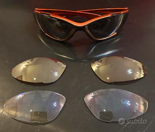Vendo in ottime condizioni occhiali sportivi Bertoni modello D200A. Avvolgenti e con 3 paia di lenti intercambiabili. Lenti scure per protezione da luce solare, lenti colore ambra per la guida notturna e lenti trasparenti per protezione da vento e polvere. Completi di custodia.