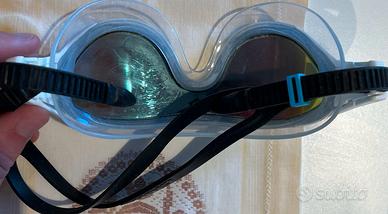 Occhialini Arena usati, molto comodi in quanto la visiera non presenta divisione fra una lente e l'altra.