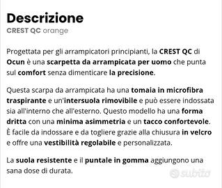 vendo per inutilizzo scarpette arrampicata Ocun Crest nr.45, mai risuolate e con suola ancora in buono stato.