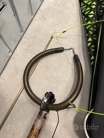 Il fucile subacqueo funziona perfettamente, asta nuova e completo di mulinello, sacca zaino porta pinne con lacci per legare due fulici su entrambi i lati