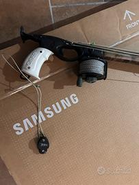 Fusto osso di seppia. Entrato 5 volte in acqua. Asta sigalsub 6.25. Elastici c4 nuovi da 14 com acontrino. Asta di ricambio 6.5 con tache limate. Richiamo pesci.
