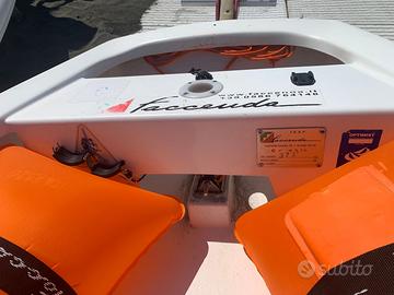 Armo interno rifatto interamente nel 2022, antisdrucciolo nuovo. Deriva, timone, albero, boma e vela allenamento in buone condizioni. Carrello con ruote gonfiabili. Vela da competizione 3FL usata una sola volta in acqua dolce (+200€). Regalo spraytop, calzari e steccati magic marine. Visibile al Nauticlub di Ostia.