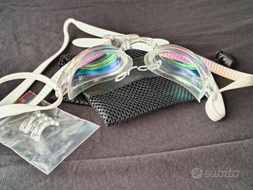 Occhialini da nuoto in ottime condizioni, utilizzati una sola volta. Compresi naselli intercambiabili per adattarsi meglio alle dimensioni del viso.