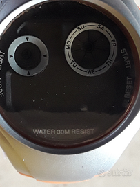 Orologio da polso con cronografo illuminato con sveglia resistente all'acqua fino a 30 metri nella sua scatola originale con istruzioni.