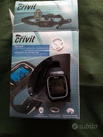 orologio da polso multifunzione Crivit in ottime condizioni con fascia pettorale cardiofrequenzimetro, trasmissione senza cavi dalla cintura a orologio mentre si fa sport,contapassi, calorie, indice di massa, sveglia, ecc ecc supporto per bici pila cambiata da poco ritiro a trento o spedizione