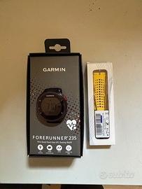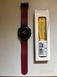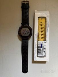 Vendo Garmin Forerunner 235, l'orologio ha segni di utilizzo, vetro rigato, (Come da foto) ma funziona perfettamente, incluso cinturino di colore giallo, cavo per ricarica, confezione originale.