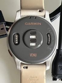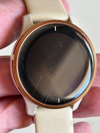 Orologio Garmin Venu Amoled 43 mm funzionante con problemi batteria consumata (dalla mattina alla sera) anche meno se usi spesso va in crash che diventa difficile a usare touchscreen che non funziona non lo so che problema è, si vende come è per riparazione
