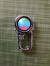 Orologio sportivo da esterno schermo con display luminoso con moschettone con bussola e cronometro, digitale al quarzo.